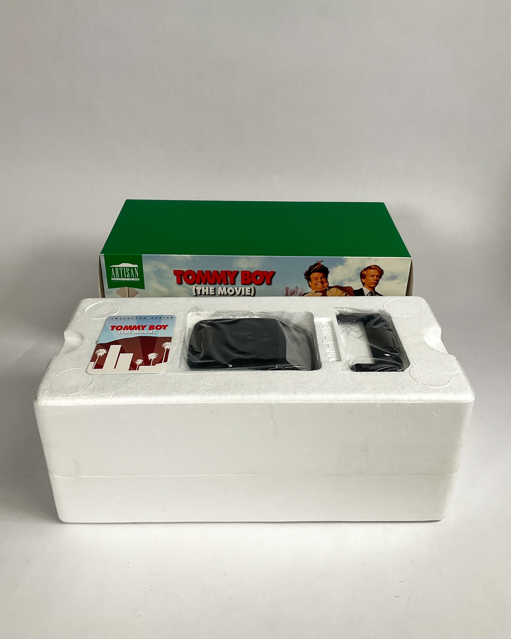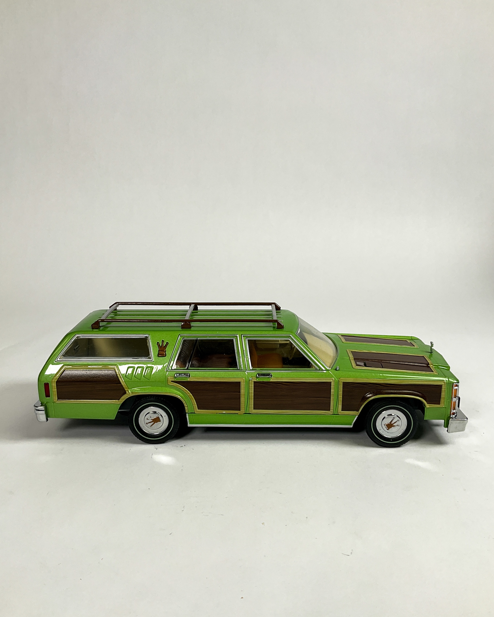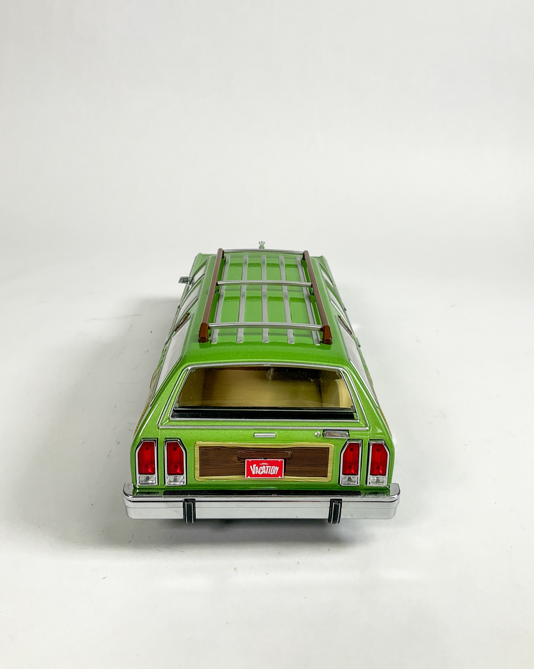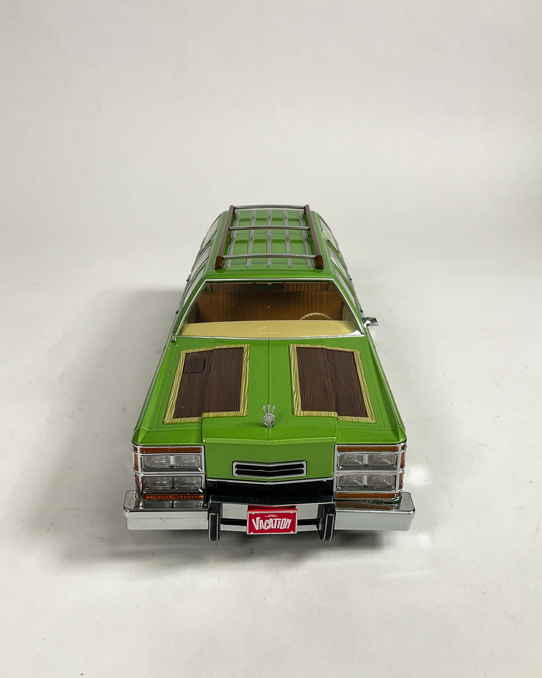 Two Greenlight Collectibles 1:18 scale vehicle replicas including Tommy Boy 1967 Plymouth Belvedere GTX and National Lampoon’s Vacation Wagon Queen Family Truckster. Tommy Boy GTX factory-sealed in original packaging. 5 1/2" H x 13 1/2" W x 6 1/2" D. Some creasing to original boxes.