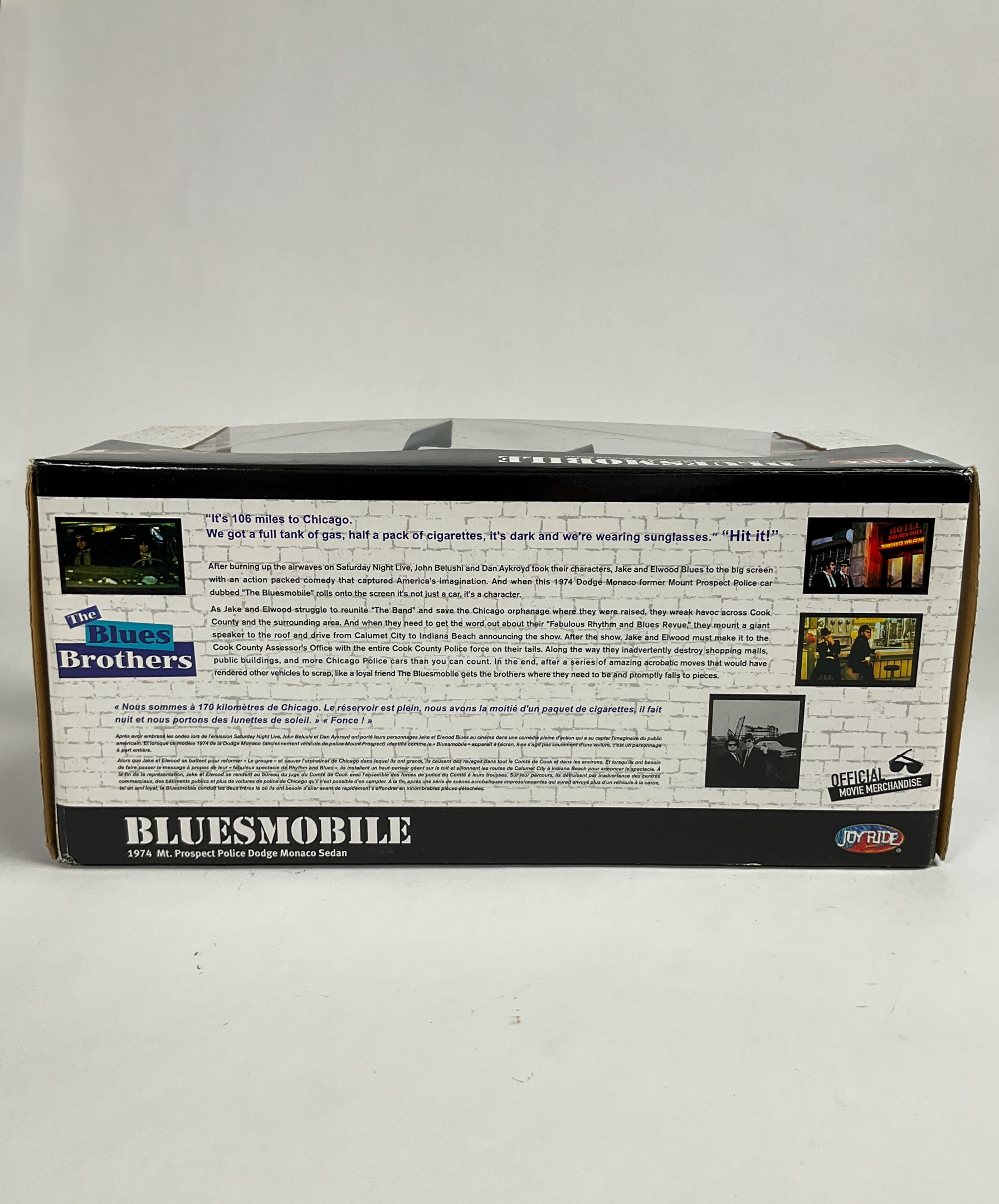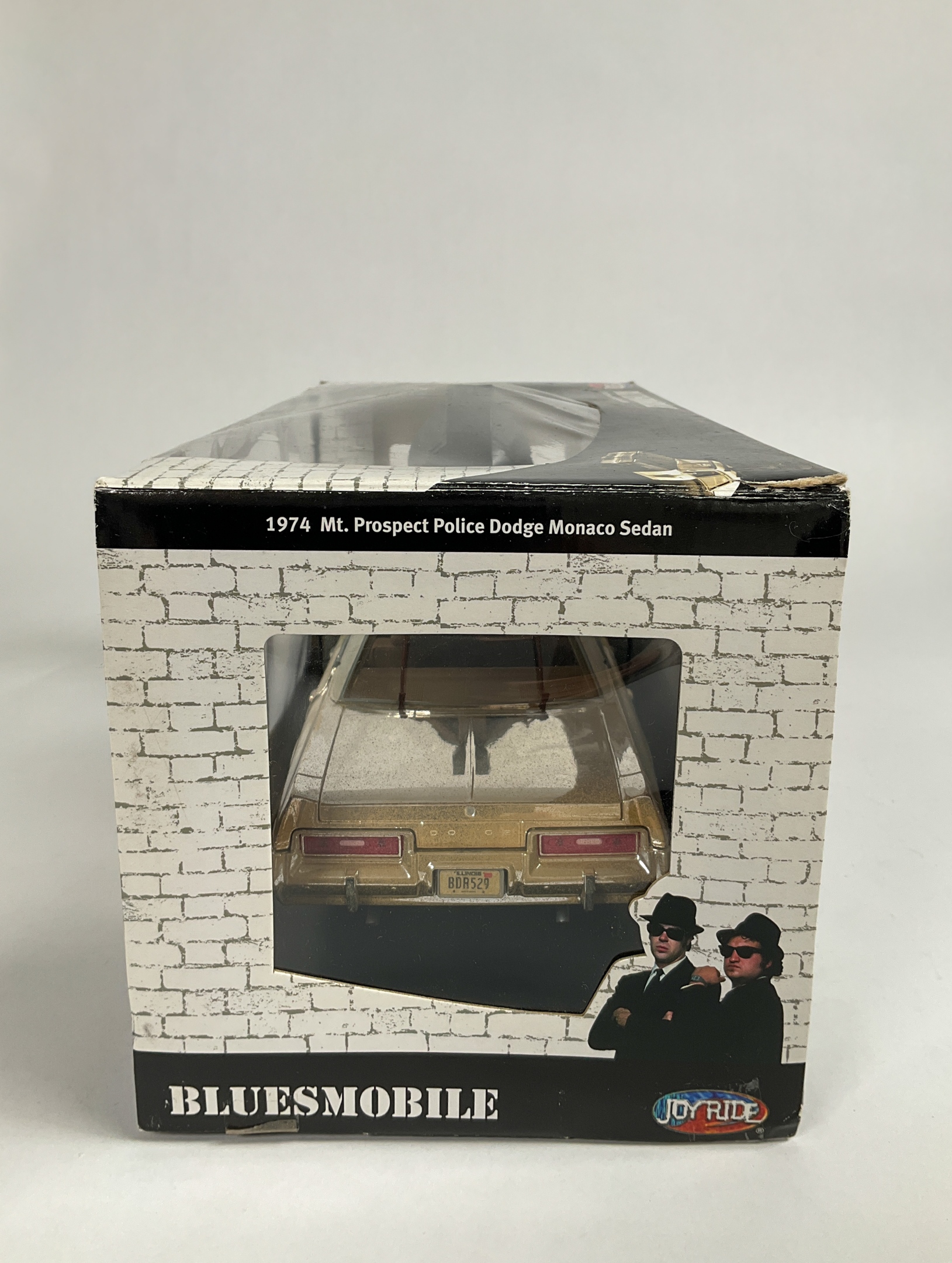 The Blues Brothers Bluesmobile 1:18 Scale 1974 Mt. Prospect Police Dodge Monaco Sedan. 6" H x 14" W x 6 1/2" D. Wear throughout original box.