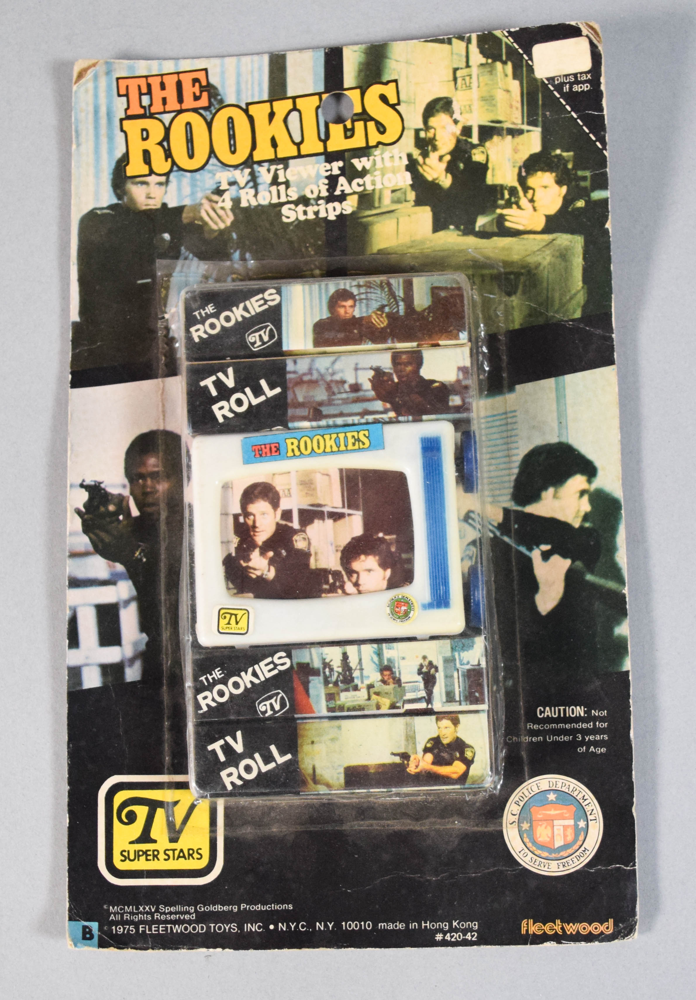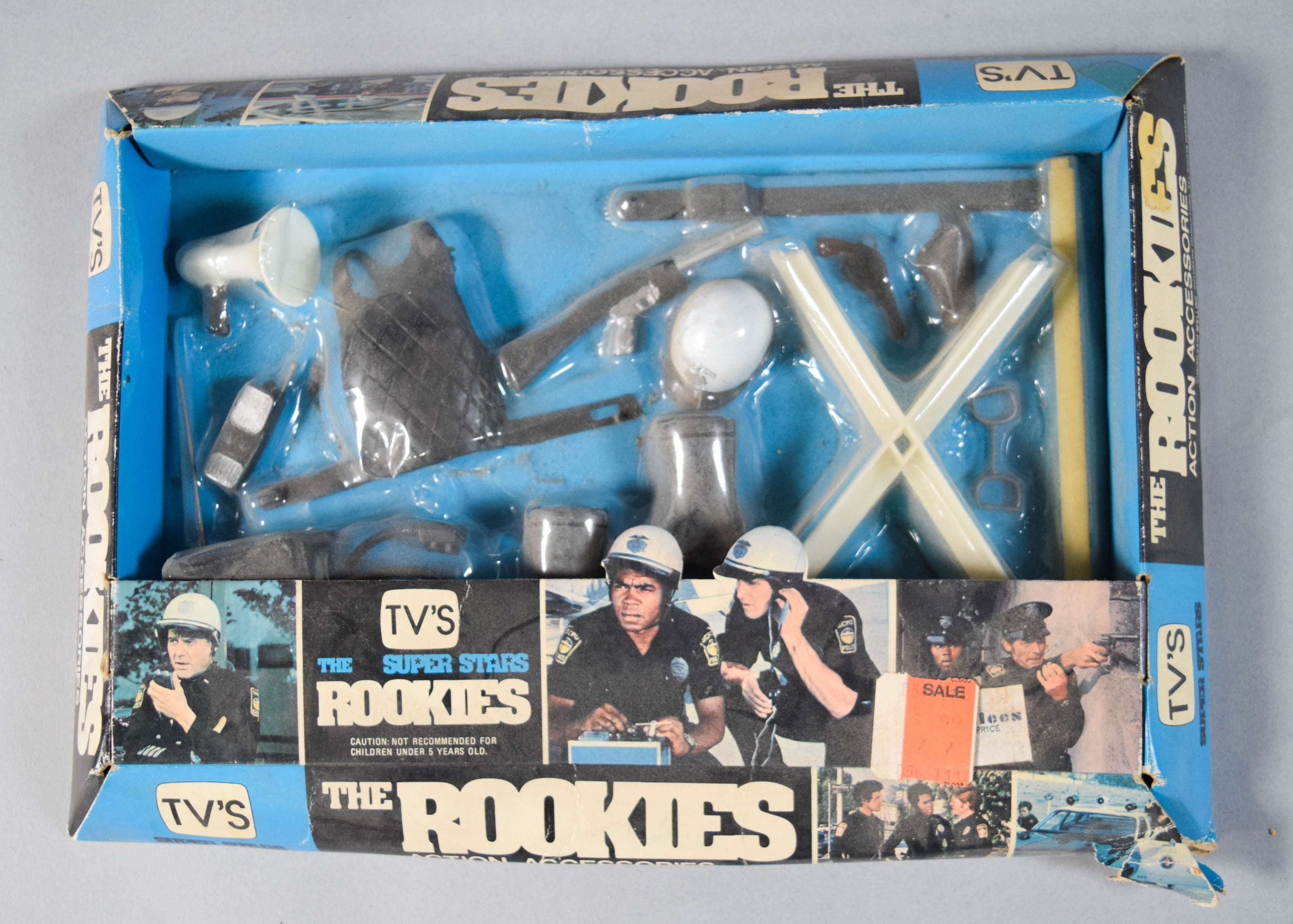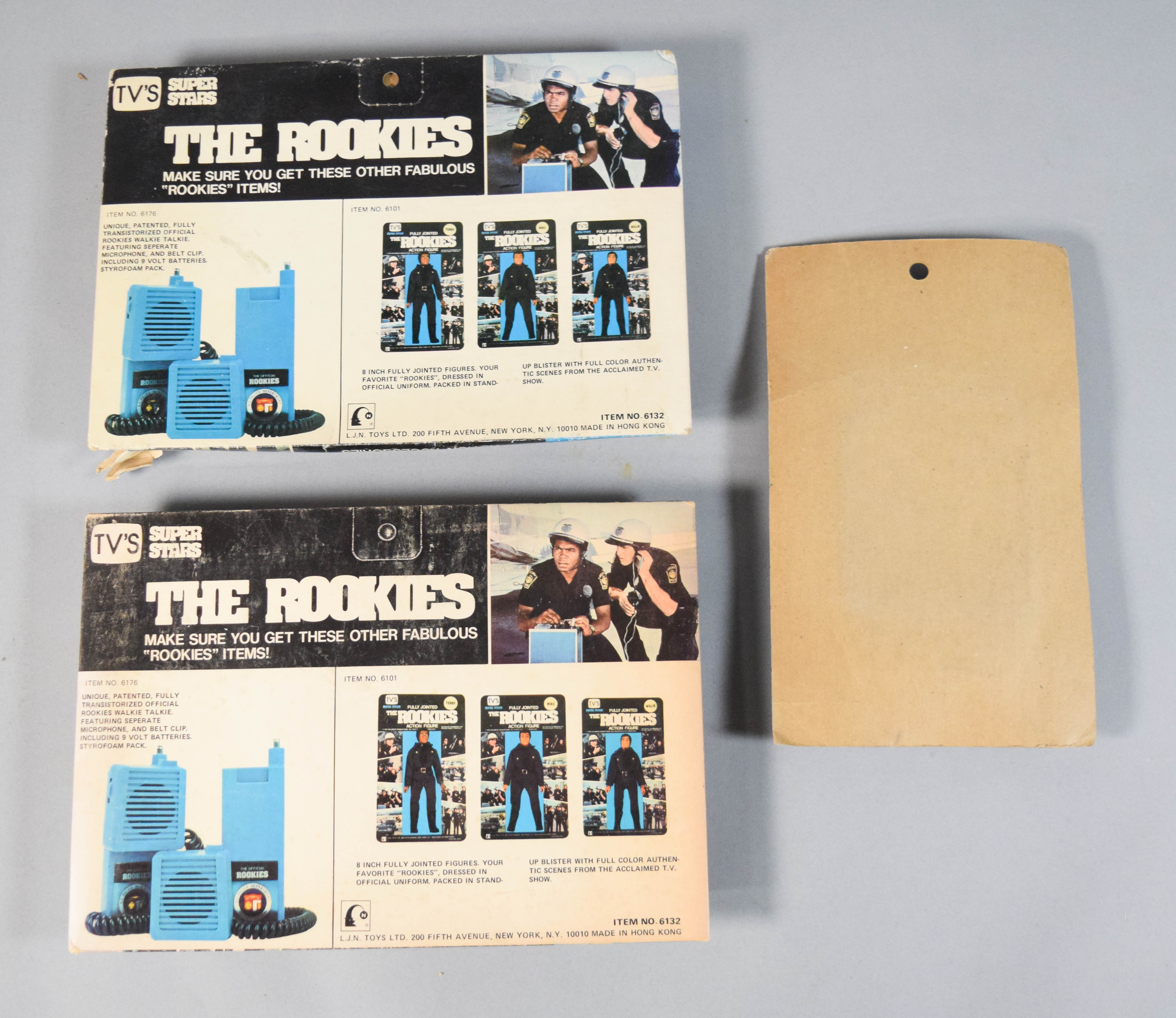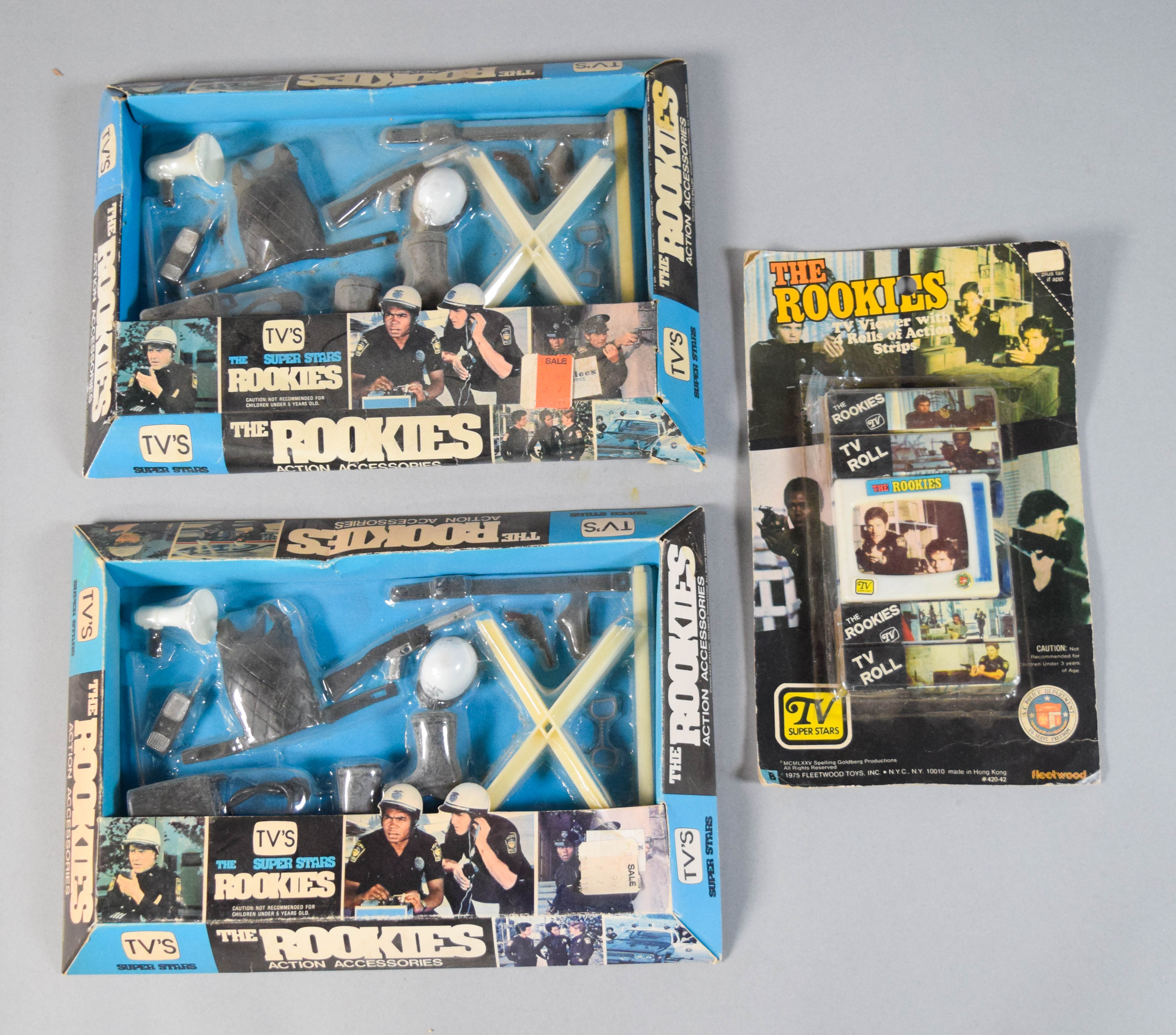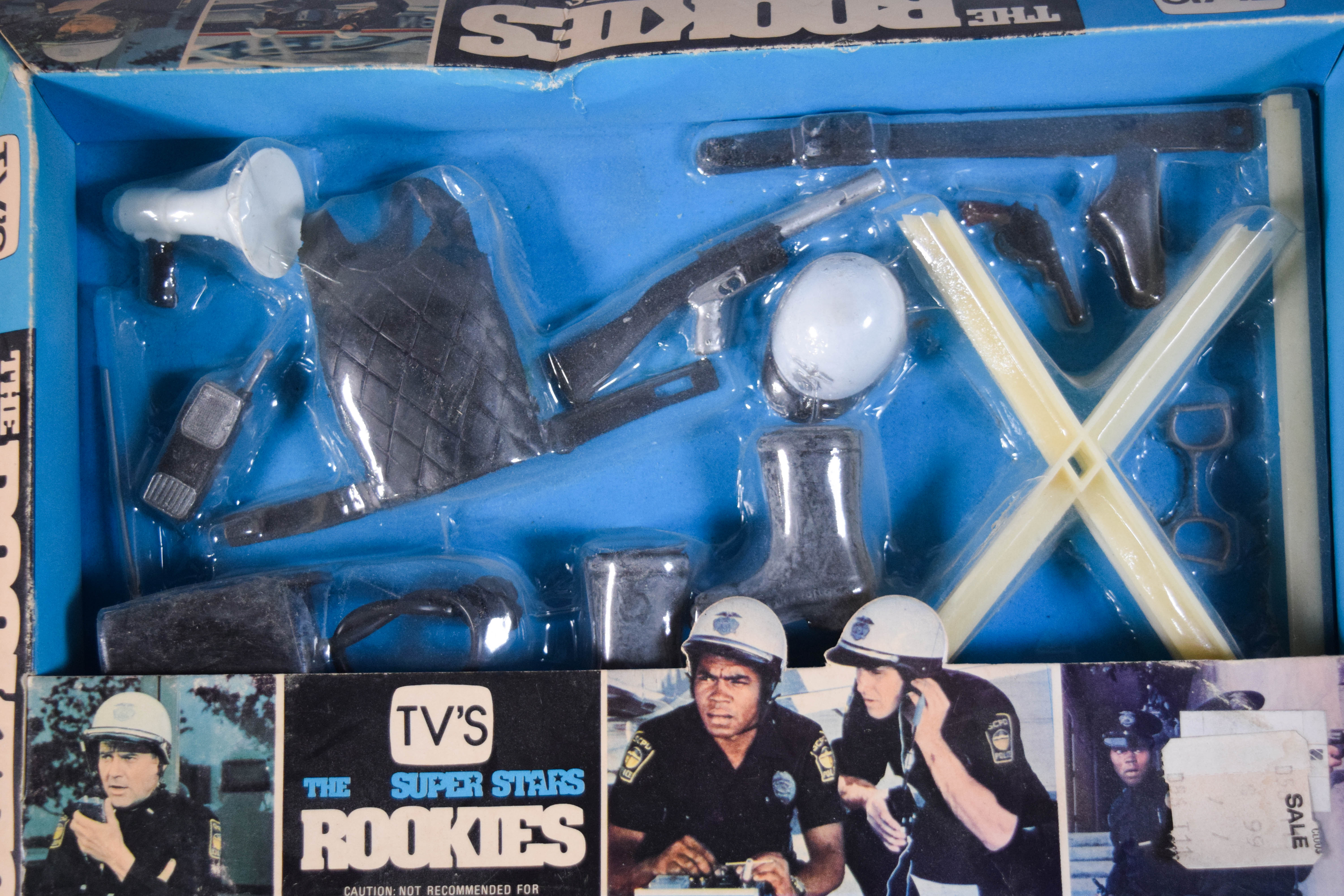 Three vintage toy sets based on the television series The Rookies. Includes two Action Accessories sets produced by L.J.N. Toys and one TV Viewer with 4 Rolls of Action Strips produced by Fleetwood Toys. Largest item 8″ H x 11.5″ W x 1.5″ D.