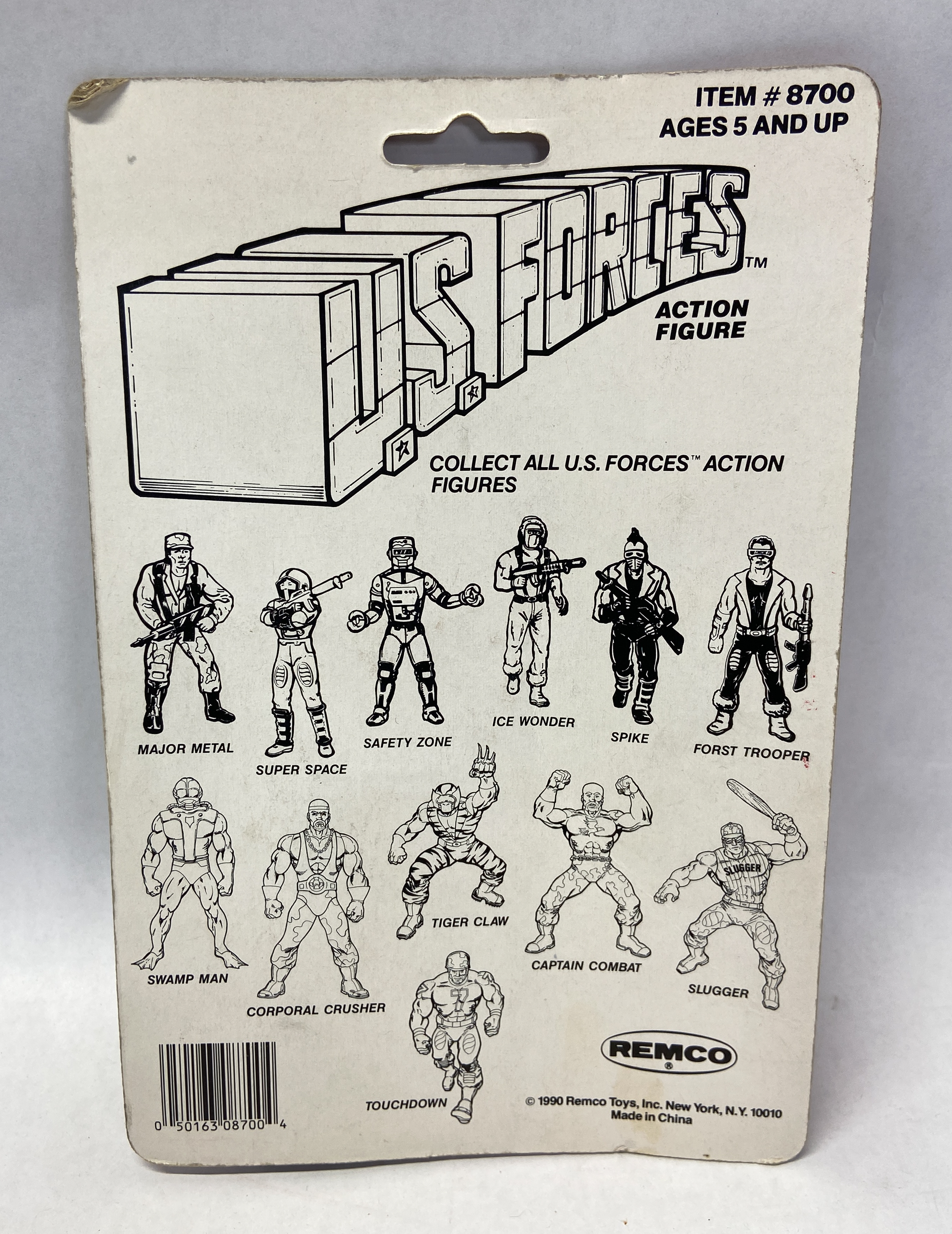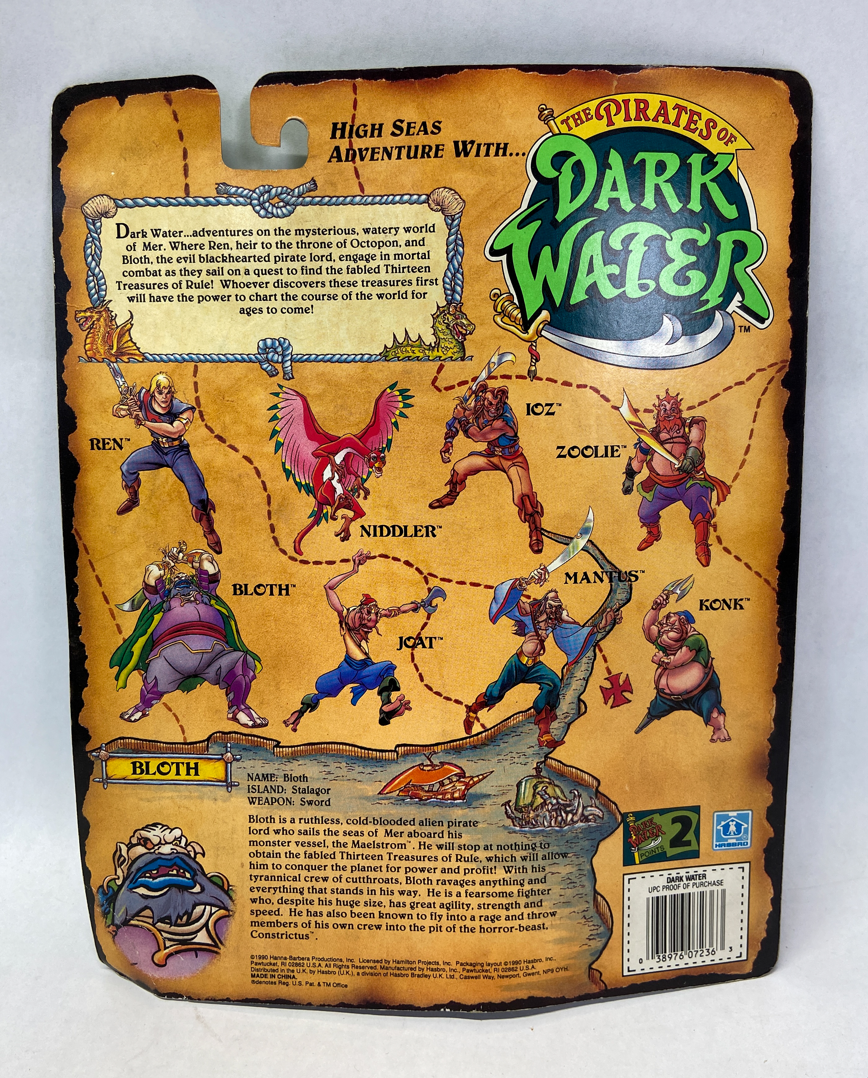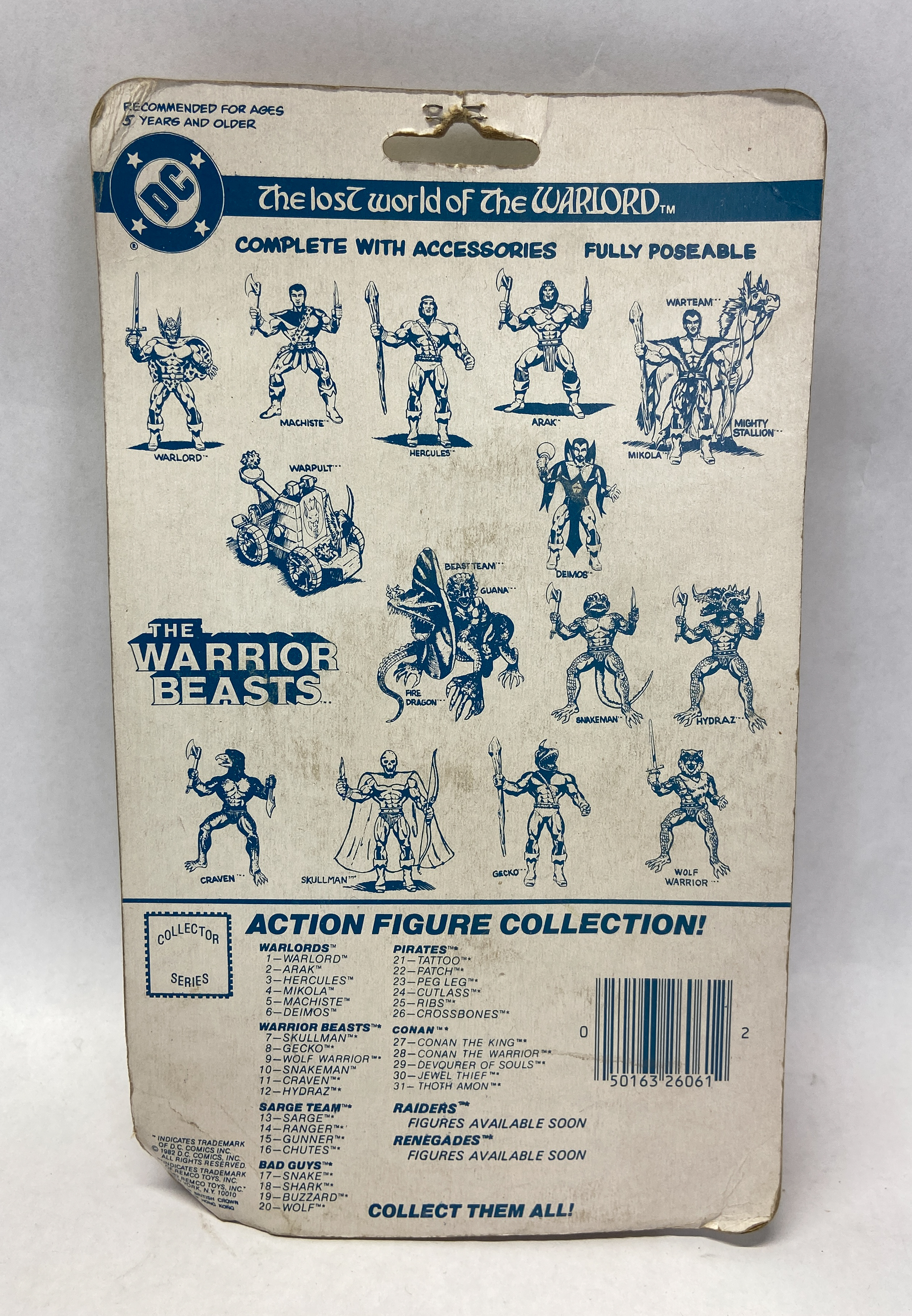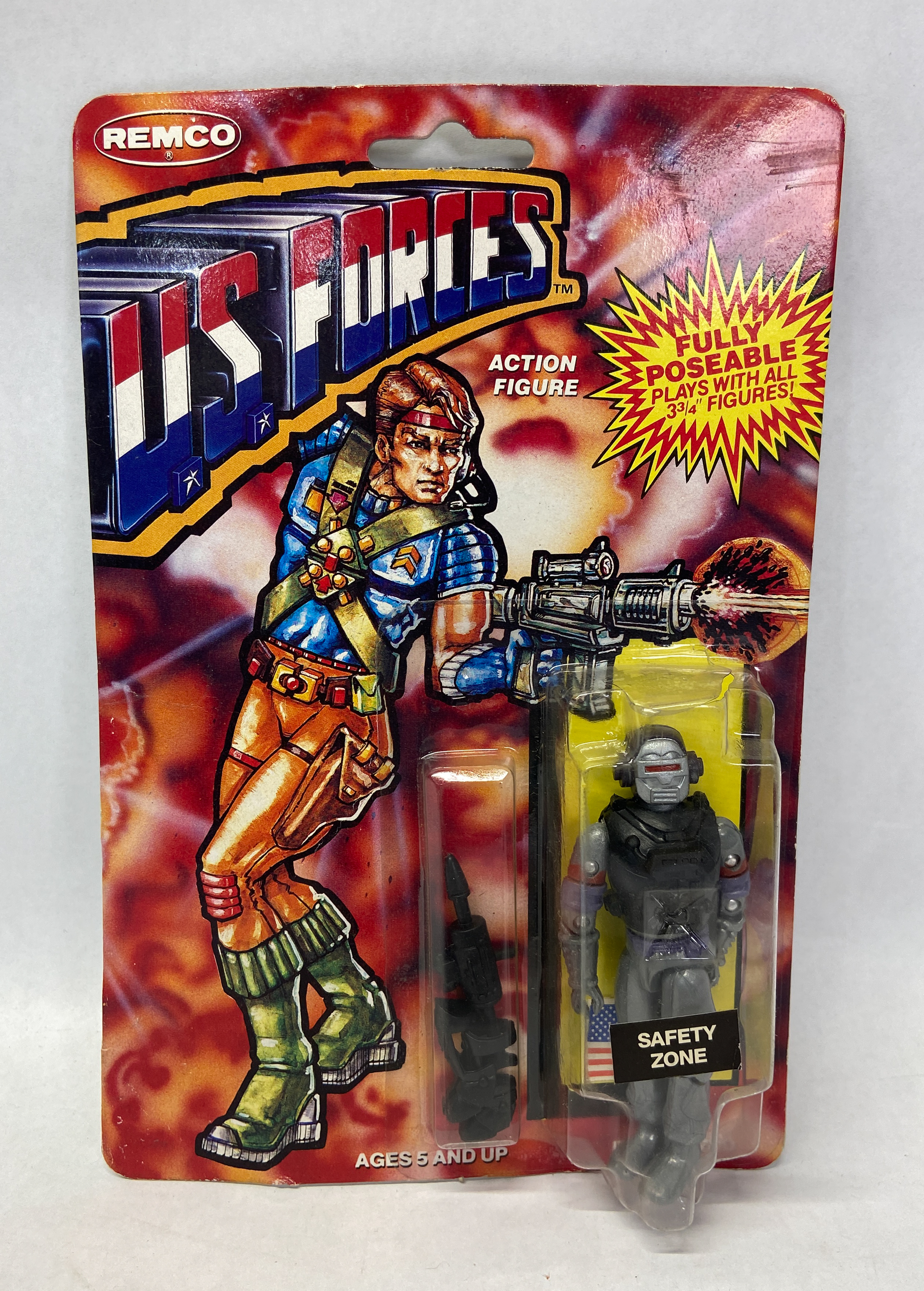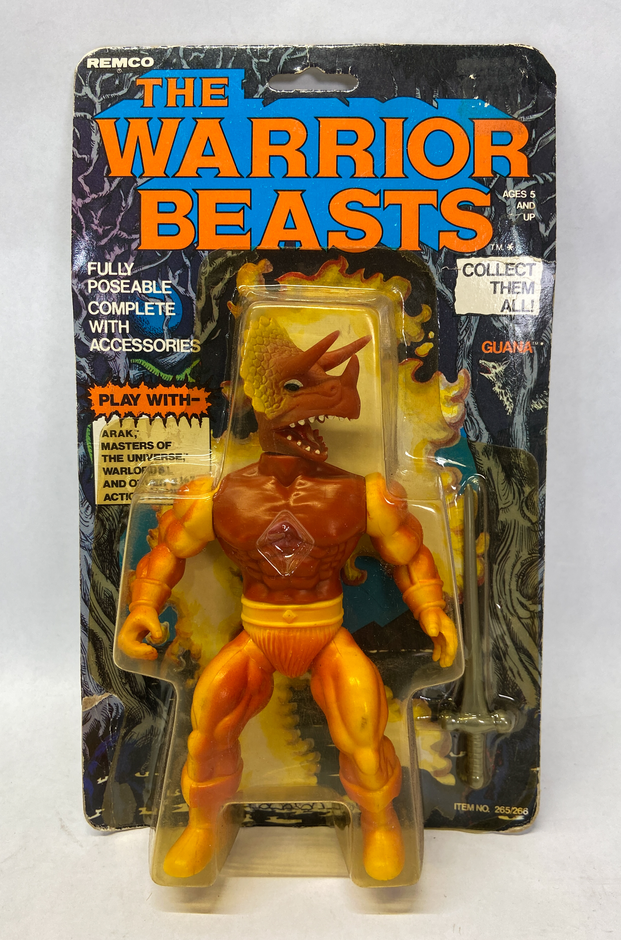 Collection of eight vintage action figures. Assortment includes a 1991 THQ Fox’s Peter Pan & The Pirates Wendy action doll; a 1991 Kenner Robin Hood Prince of Thieves Friar Tuck with Battle Staff; a 1982 Tristar International MASH Hawkeye 3 3/4-inch figure; a 1990 Remco U.S. Forces Safety Zone figure; a 1990 Hasbro The Pirates of Dark Water Bloth figure; a 1990 Kenner Swamp Thing Snap Up Swamp Thing with Log Bazooka; a 1982 Remco/DC Comics The Lost World of The Warlord figure; and a 1982 Remco The Warrior Beasts Guana figure. The MASH Hawkeye bubble is unsealed from the cardback. Largest item 10.5″ H x 8.5″ W x 2″ D.